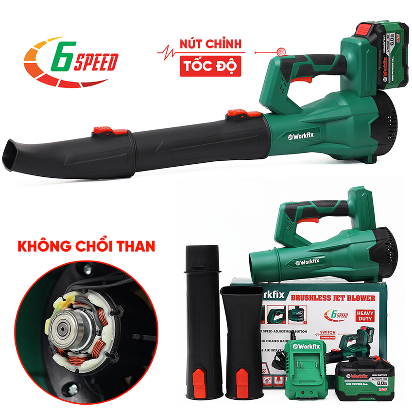 Máy thổi bụi, thổi lá Workfix WF-TL680M là sự kết hợp hoàn hảo giữa sức mạnh và sự bền bỉ. Trang bị động cơ 100% lõi đồng không chổi than, máy không chỉ vận hành êm ái mà còn giảm thiểu tối đa ma sát, giúp tăng tuổi thọ động cơ gấp nhiều lần so với dòng máy thông thường.